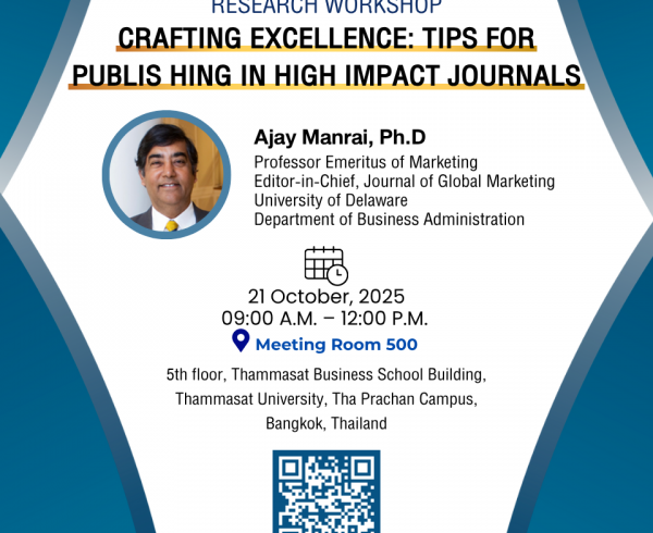 “Crafting Excellence: Tips for Publishing in High-Impact Journals” Come and join us! Research Workshop: “Crafting Excellence: Tips for Publishing in High-Impact Journals” . Speaker: Ajay Manrai, Ph.D. Professor Emeritus of Marketing Editor-in-Chief, Journal of GlobalRead more