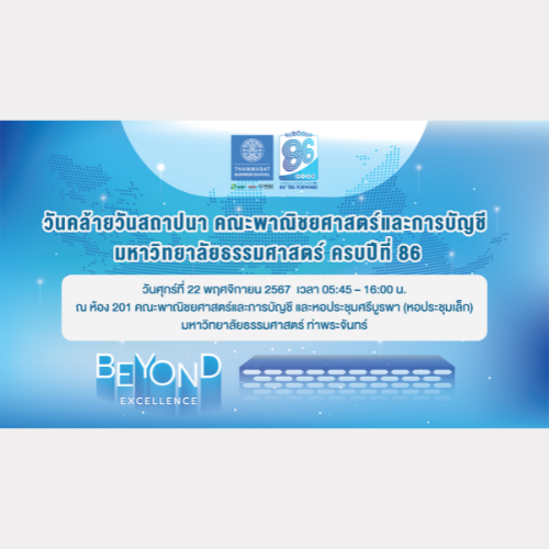 วันคล้ายวันสถาปนา คณะพาณิชยศาสตร์และการบัญชี มหาวิทยาลัยธรรมศาสตร์ ครบปีที่ 86 กำหนดจัดขึ้นในวันศุกร์ที่ 22 พฤศจิกายน 2567 จึงขอเชิญ คณาจารย์ เจ้าหน้าที่ นักศึกษา ศิษย์เก่า และแขกผู้มีเกียรติเข้าร่วมงาน ตั้งแต่เวลา 5:45 – 16:00 น. ณ ห้อง 201 คณะพาณิชยศาสตร์และการบัญชี และหอประชุมศรีบูรพา (หอประชุมเล็ก) มหาวิทยาลัยธรรมศาสตร์ ท่าพระจันทร์