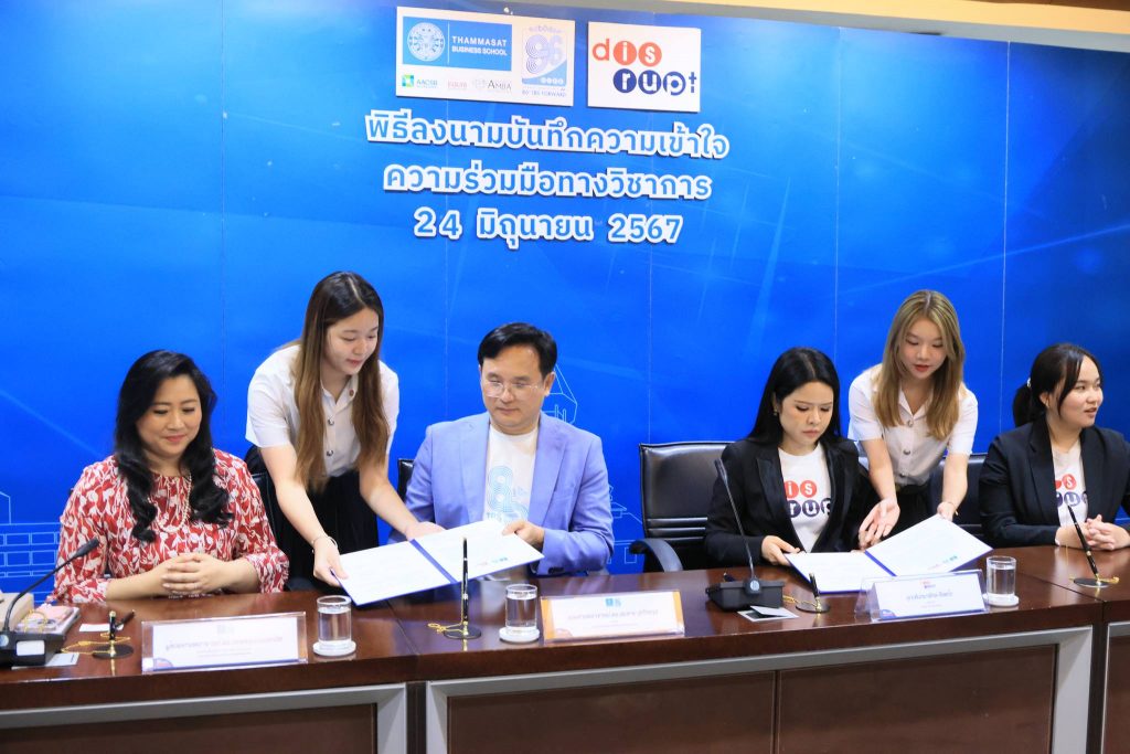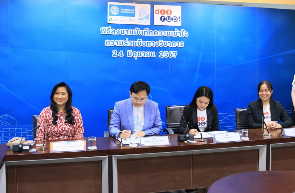 เนื่องในพิธีลงนามบันทึกความเข้าใจความร่วมมือทางวิชาการ (MOU) ระหว่างคณะพาณิชยศาสตร์และการบัญชี ม.ธรรมศาสตร์ กับ บริษัท ดิสรัปท์ เทคโนโลยี เวนเจอร์ จำกัด ในวันที่ 24 มิถุนายน 2567 เวลา 14:00 – 14:45 น. ณ ห้องประชุม 500 ชั้น 5 คณะพาณิชย์ฯ ม.ธรรมศาสตร์ ท่าพระจันทร์