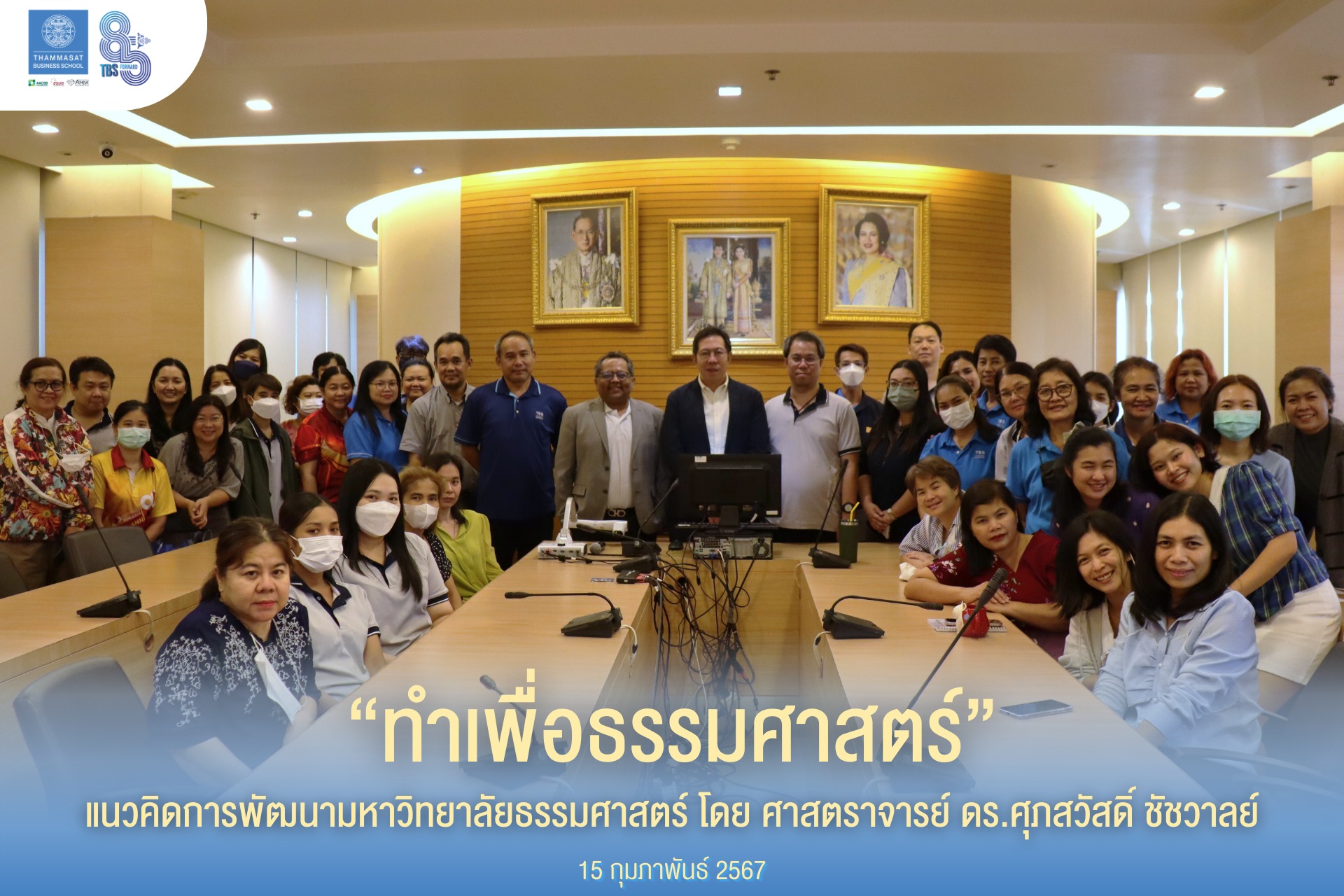 ประชาคมคณะพาณิชย์ฯ ม.ธรรมศาสตร์ ร่วมฟังแนวคิดการพัฒนามหาวิทยาลัยธรรมศาสตร์ “ทำเพื่อธรรมศาสตร์” โดย ศาสตราจารย์ ดร.ศุภสวัสดิ์ ชัชวาลย์ พร้อมรับฟังความคิดเห็นในแง่มุมต่าง ๆ จากประชาคมฯ ในวันพฤหัสบดีที่ 15 กุมภาพันธ์ 2567 เวลา 14:00 – 15:00 น. ณ ห้องประชุมหลวงดำริฯ ม.ธรรมศาสตร์ ศูนย์รังสิต และ Online ผ่าน Zoom Meeting