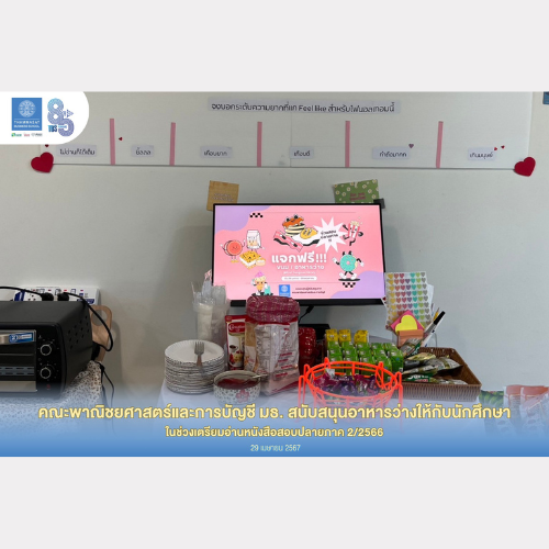 คณะพาณิชยศาสตร์และการบัญชี ม.ธรรมศาสตร์ ร่วมสนับสนุนอาหารว่างให้กับนักศึกษาในช่วงเตรียมอ่านหนังสือสอบปลายภาค 2/2566 ณ ห้องสมุด ศ.สังเวียน อินทรวิชัย (ชั้น 4 คณะพาณิชยศาสตร์และการบัญชี ท่าพระจันทร์) และห้องสมุดสาขาต่างๆ ของหอสมุดฯ
