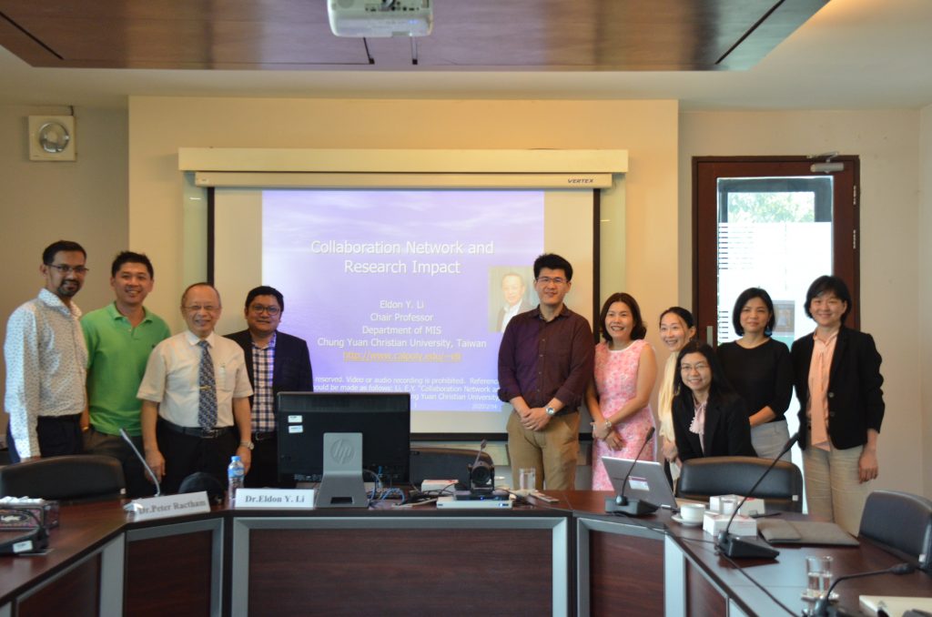 TBS Research Series has released the special talk in relation to “Collaboration network and research impact: a social capital perspective” leading by Prof.Dr.Eldon Y.Li, Chair Professor and Director of Ph.D. Program in Business from Taiwan Chung Yuan Christian University as a guest lecturer at the meeting room 423, Thammasat Thaprachan.