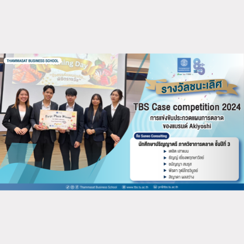 คณะพาณิชย์ฯ ม.ธรรมศาสตร์ ขอแสดงความยินดีกับนักศึกษาภาควิชาการตลาด ชั้นปีที่ 3 ที่คว้ารางวัลชนะเลิศ TBS Case competition 2024 ซึ่งเป็นการแข่งขันประกวดแผนการตลาด ของแบรนด์ Akiyoshi และได้รับเงินรางวัล 30,000 บาท ภายใต้ชื่อทีม Suneo Consulting โดยมีสมาชิกร่วมทีมดังต่อไปนี้